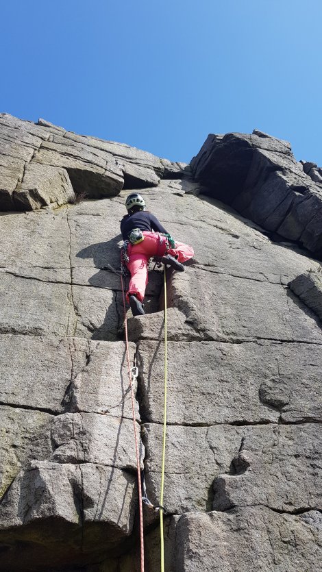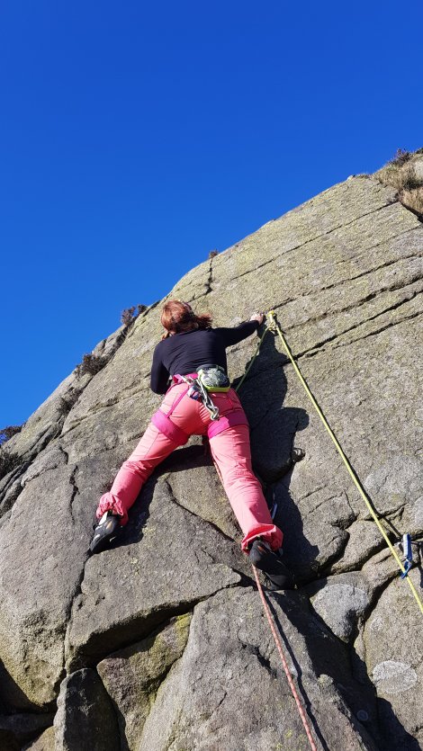 Helen certainly had her trad head on, leading (the unseasonal) October Slab and Autumn Gold, both HS,
