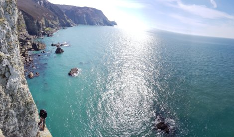 http://maps.google.com/maps?q=53.3188549,-4.6802069), allows access to the routes at the left hand end of Main Cliff at all states of tide (although you’ll need to skip some or all of the first pitch at high tide) and avoids the huge rambling approach and descent. Pioneered by Andy and Stan at last years Gogarth meet, this has the added benefit of enabling multiple routes to be done in a day.