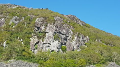 With the sun streaming through the van windows we were up and about by 7.30am and heading up to the crag before 9 whilst still enjoying the morning coolth. Not often I’ve been on the crag at 9pm and then 9am the next day! Our objective was Craig y Castell, the sometimes overlooked third crag at Tremadog