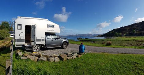 A side trip towards Arisaig failed to outflank a band of rain blowing in from the west, but did lead us to stumble upon the Glenuig Inn, offering free overnight parking and good but expensive food (not bad if you knock off the notional cost of a night’s camping). The views across Loch in the morning were well worth the detour alone.
