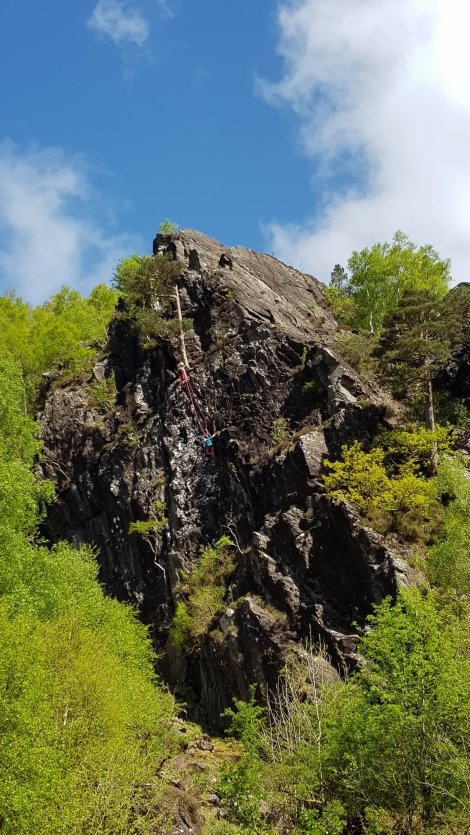 We headed back towards Fort William in glorious sunshine and skirted town to drive up Glen Nevis to Poldubh. A whole bunch of crags are scattered over the hillside, and look quiet scruffy and insignificant from a distance, but hold quality routes of up to 3 pitches and almost 100m.