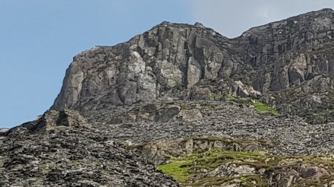 High above the mining village of Tanygrisiau, you zigzag your way up the quarrymen’s spoil heaps to reach this small but attractive crag. It’s clearly “University clubs in Wales week” and it’s good to see another young bunch taking early steps in their trad careers – this leaves us with Brys, a fun HVS up the middle of the crag on pockety quartz which we do in one long pitch – probably worth more than its solitary star.