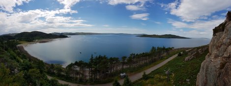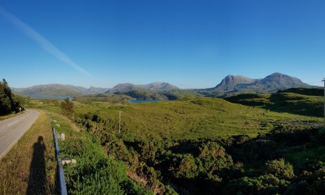 With the fabulous weather forecast to continue for a few more days we decided to explore another bit of the coastline, and head 50 miles (and about 3 hours!) further south to Gairloch (passing a very pleasant night at a viewpoint overlooking Quinag and following England’s penalty shootout victory on a whif of mobile data!)