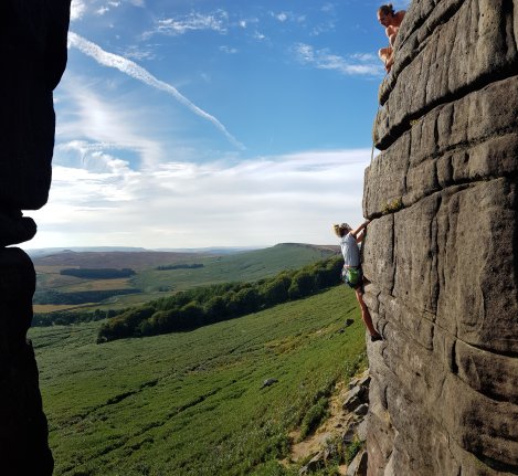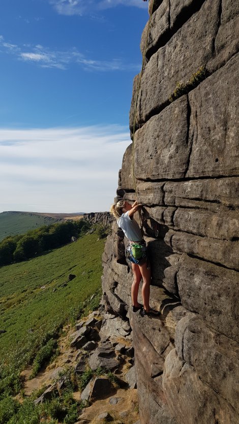 Glorious afternoon at Stanage for Leah’s first experience of trad climbing.