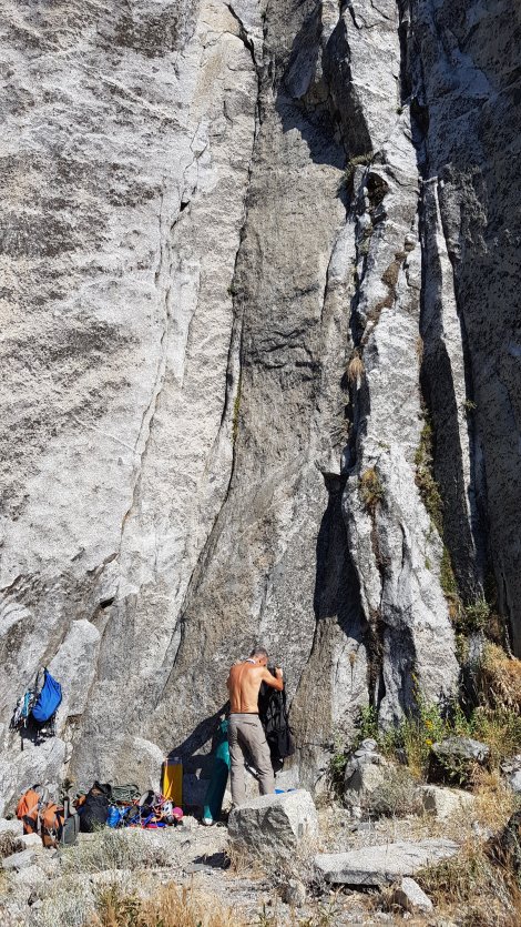 although that’s only 4 out of 27 they do represent the technical crux (all being C3ish) and we were pretty happy with progress. Back down to Camp 4 for beers, a fire and an improvised game of scrabble (the letters SNICKERS make for a somewhat limited vocabulary and I think we’ll need to work on a “travel version” if we’re going to play on the ledge!