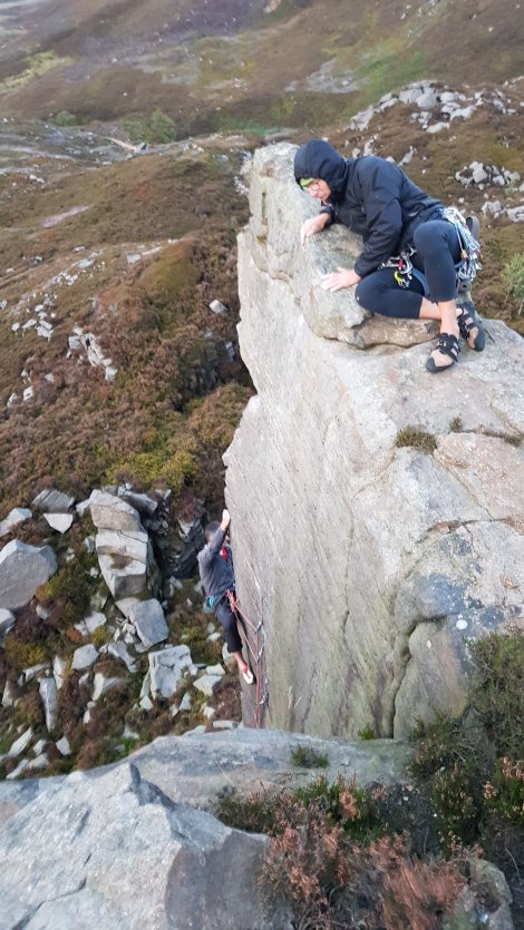 Pisa Superdirect is the 3* classic of the crag, and is no pushover despite being HVS. Here’s Jake topping out and just catching the rays.