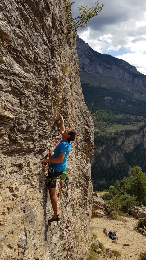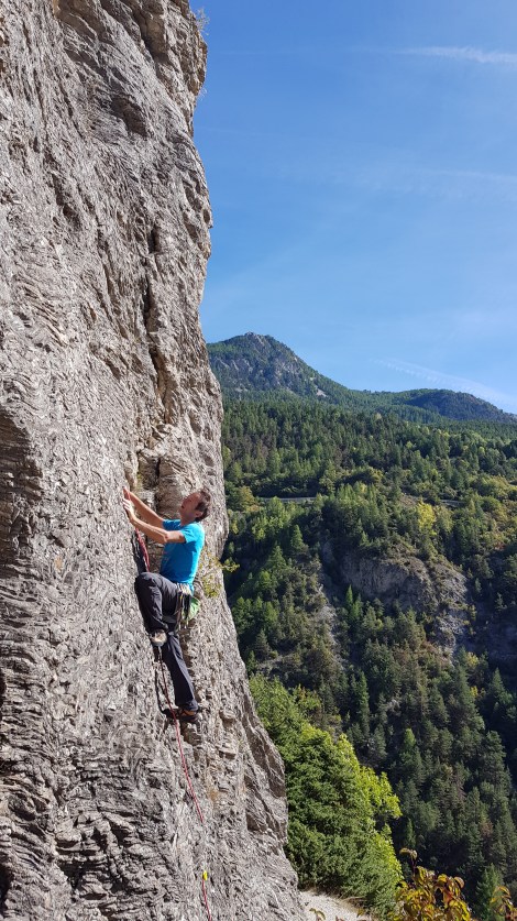 After a day in the Embrun area, see next post, we were back at Les Traverses to sample the sectors beneath the road, starting with Lezaroide.