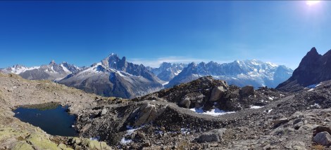 The Dru and Mt Blanc were looking stunning as we plodded our way up the hill towards the Index lift station (sadly this lift wasn’t operating) but we made short work of the advised 1:50hrs approach past the lift to The Grande Floria, and were uncoiling our ropes at the foot of the crag in just an hour.