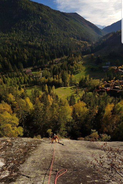 To make matters worse, the actual 6a first pitch of B au B de C was one of those granite slabs where “slab” translates as “no holds and much skin-grating capacity”. Unwilling to trust my feet at one point, I ended up standing on a bolt to reach the next hold – oh the ignominy!