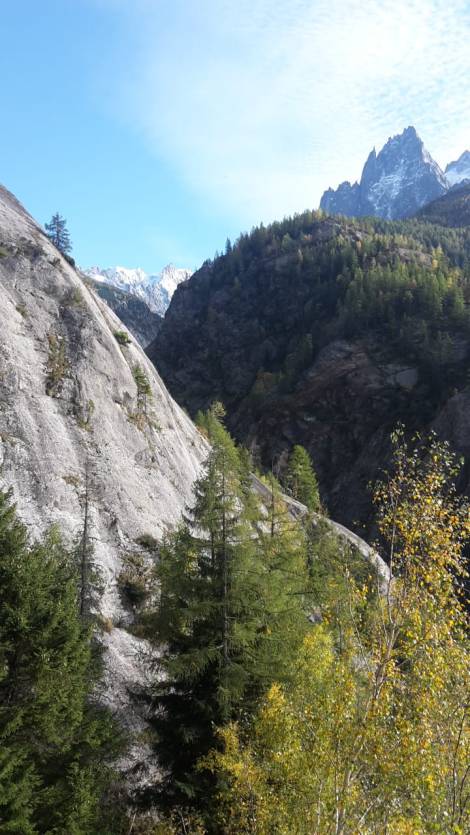 This one isn’t featured in the Rockfax, but gets rave reviews in the local guide: “Site majeur de l’escalade dans la valee de Chamonix”. Unfortunately, my hastily snapped shots of a borrowed topo had my thumb over key bits of the approach map, and the description was a bit vague. To save you the bother of our explorations, here’s a bit more beta…