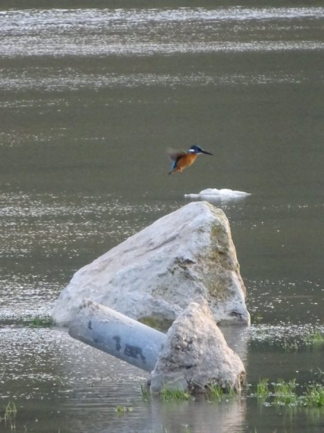 and I did the aretes either side – they look stunning, but the climbing is a bit disappointing: Leading Edge (LHS) is a tricky 6b+ and Cutting Edge (RHS) an even trickier 7a that’s quite blind and would be very tough to on sight.Having pretty much ticked the crag, it was back to our peaceful beach to watch our adopted Kingfisher going about his business