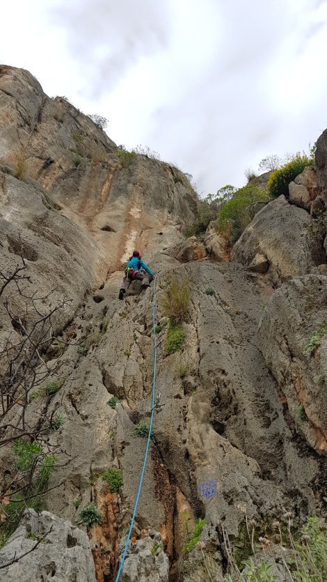 Then we both did Anoixi, 6a, which was “only” worth 3* – tricky technical groove and the first polished foot hold we’ve encountered on the trip so far.