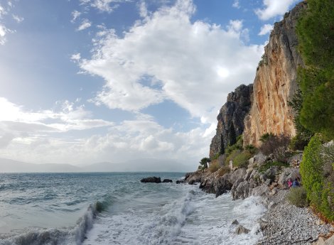 Described in the guidebook as “the star attraction of Nafplio crags”, Neraki does actually manage to live up to the hype. Located about 1km south of the Promenade sector and accessed via a similarly attractive wander out of town, it’s a world-class lump of rock,