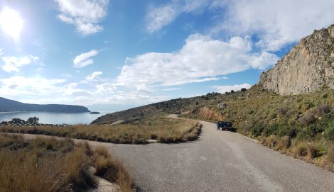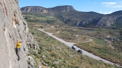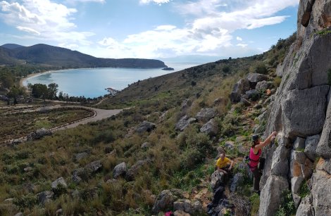 Another decent crag overlooking the sea, although this time the access is through a zigzagging maze of crumbling roads that were presumably intended to serve a villa complex that never got built.