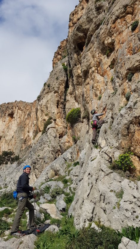 A bit further up the hill, on Sector Ekpedeftikes, we did Ripeos Anemos, 6c, Apolithomeno, 6b and Captain, 6b+. All good, though on crimpier and occasionally pebbly white rock.