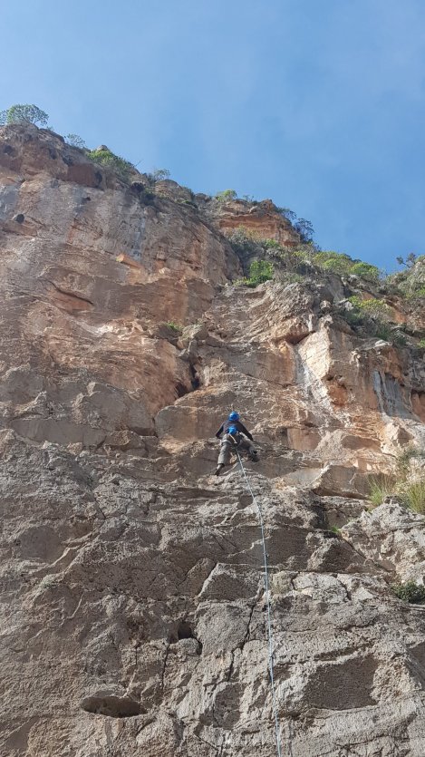 which was fitting as this is the name of a new route, 7a, put up by the irrepressible Mr Piola last year. Here’s Gilly making short work of the tufa crux before a big run out on steep but steady ground