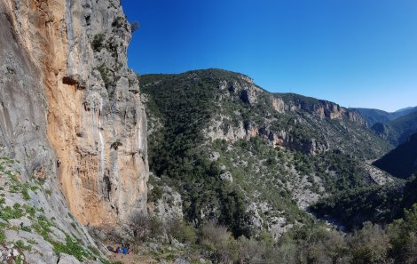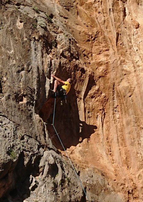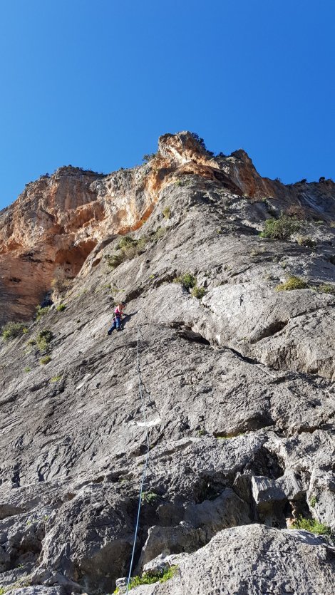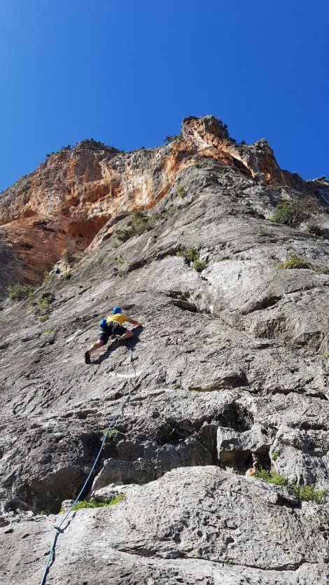 We’d visited this crag on our last trip in the hope that the altitude plus the curved nature of the crag might provide enough shade and relief from the heat. The strategy had paid off when I just caught the last vestige of shade to do the awesome tufa masterpiece of Super Ramasca https://www.google.com/amp/s/rockaroundtheworld.co.uk/2017/10/27/skiadianiko/amp/