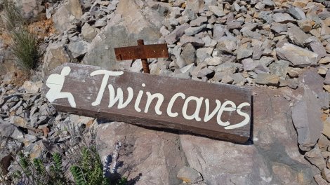 … but actually a bit of a misnomer, as the climbing is all concentrated in the much more impressive lefthand cave and the slabbier wall to its left, giving a crag of two halves.