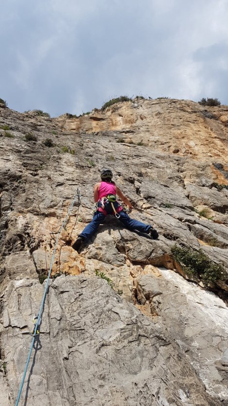 The walls are home to about a dozen routes, with a clump of excellent 5c/6as. Here’s Helen on Chrisitikia