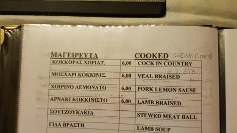 The highlight of our rest day (beyond the now obligatory cryptic crossword!) was dinner in the kebab shop in town – salad, wine and more chicken souvlaki than you can eat for a tenner, along with the award for the oddest menu entry: