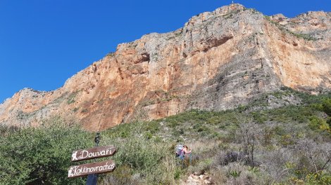 We’d had a brief foray to Orama (the furthest left sector of Kokkinovrachos, beyond Douvari and RockSpot) at the start of the trip, and I pretty much dismissed it as a bit “meh” – Aris had dished out a uniform 2* rating for every route, and the couple we’d done hadn’t been awesome. Helen had been put off because almost everything was a 40m rope stretcher (it’s hard battling the drag and weight of all that rope when you are only little) and given 6b and up.