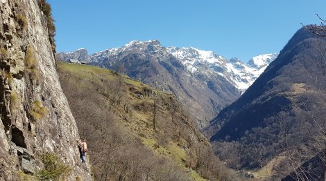 Another of the “Ticino Top Ten” is the crag of El Cat, situated above the exquisite village of Brontallo – a renovation project on a grand scale, the charming stone houses are stacked improbably up the hillside,
