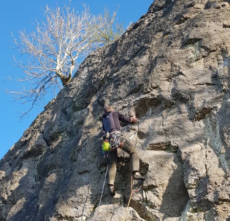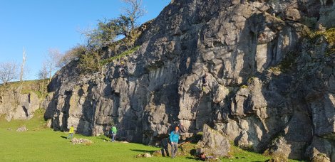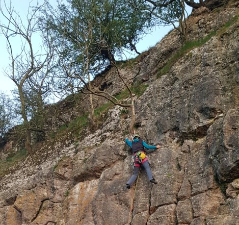 In many ways the perfect evening crag – you could belay from the car and it catches the last of the sun (after about 6pm as it faces due north!) Perhaps a month or two later in the year would have been ideal – it was properly chilly!