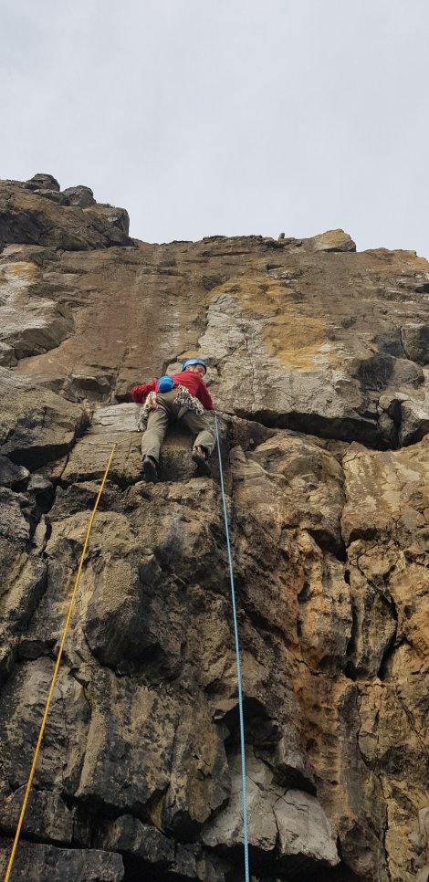 We started on the East Face with Logos, a fairly amenable E1