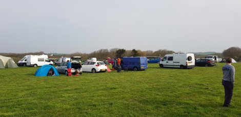 Having had the crags to ourselves, and an almost deserted campsite, the hoards began to descend on Thursday night and by Friday morning the Bosherston camping field was transformed.