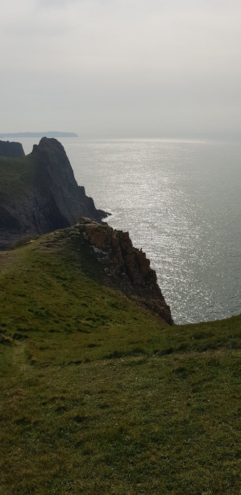 Finished off with Wraith, E3, and it was even better than I remembered from the first time I did it (on that occasion expecting an E1 crack and unaware that due to a huge rockfall it was now an E3 Arête!) You can see the arete in the picture above, though you actually climb it on its left hand side. Simply awesome – gets my vote for the best mid Extreme at Scareys and a contender for the best E3 in Pembroke. Sustained, interesting climbing throughout with bomber gear and an imposing position – a couple of barn-doory moves near the top keep you on your toes right to the end.