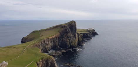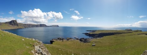 It’s a surprisingly long way from Elgol, on Skye’s south western limb, up to Neist Point, which represents the most westerly place on Skye (and therefore the farthest west you can get in Scotland without a ferry) – over 60 miles and a couple of hours. Skye is a big island! Arriving at the parking for the lighthouse we were amazed to find the place rammed!