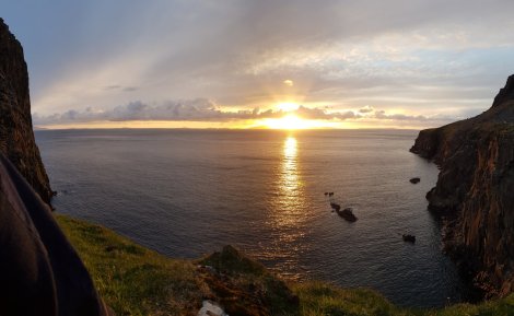 “See the sunset from Neist Point” is clearly on the Lonely Planet must-do list, and there was a babble of many languages as people trooped to and fro to the headland.