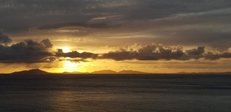 Back to the van to defrost with a couple of brews, followed by chilli, as we watch the scrabble for parking spaces as the sunset crew arrives. Around 9ish we stroll over to see what all the fuss is about, and are treated to a technicolor extravaganza as the sun slowly disappears, silhouetting the whole of the Outer Hebredies strung out across the horizon.