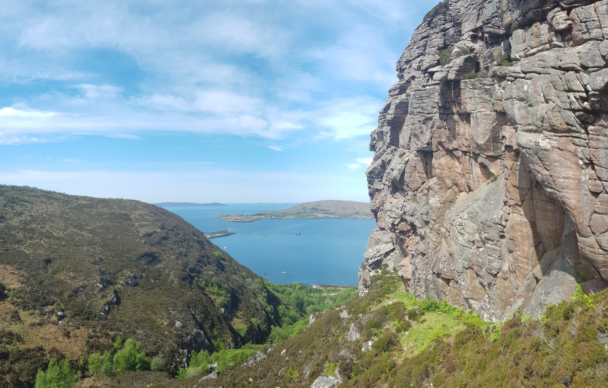 These extensive sandstone cliffs are set on the sunny north bank of a lively burn, just 10 mins from the coast road, about 3 miles north of Ullapool (hint – … Continue reading Ardmair Crags