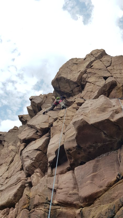 so we confined ourselves to the west facing wall just north around the arete, which has a small bunch of starred VS/HVSs.