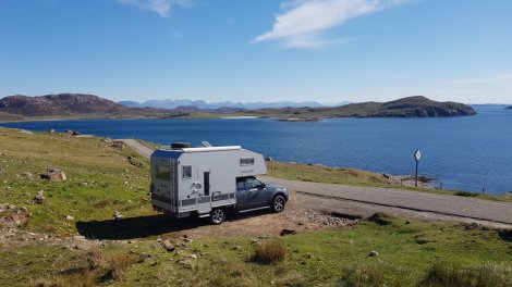 The glorious weather was forecasted to crap out the next day, so we took full advantage of a final peaceful evening enjoying the sunset with the backdrop of Stac Pollaidh and Suilven.