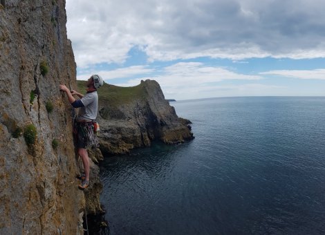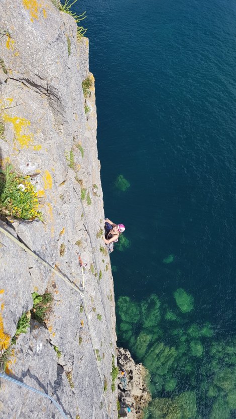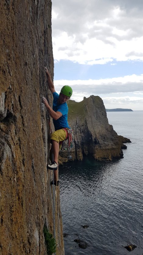 Finally, with the tide rapidly diminishing options, we did the outstanding Brazen Buttress, E2 5b (every time I do this I keep remembering belatedly how pumpy it is!) and got some more nice pics of Steve on Deep Space
