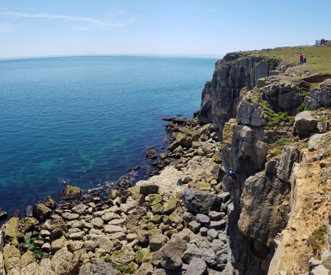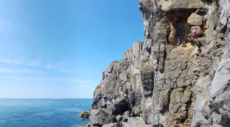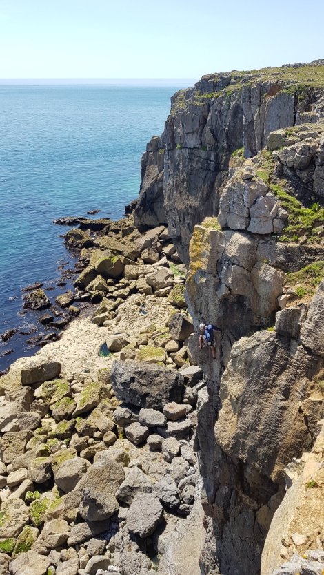 It’s hard to understand why St Govans East is so much less popular than its more celebrated neighbour – for the sake of another 100m walk you might well have the place to yourselves, and the routes are every bit as good (and a LOT less polished!) You also get all the morning sun going (to see off any overnight smeggyness) and a fair selection of routes accessible at most states of tide (though not Brave New World!)