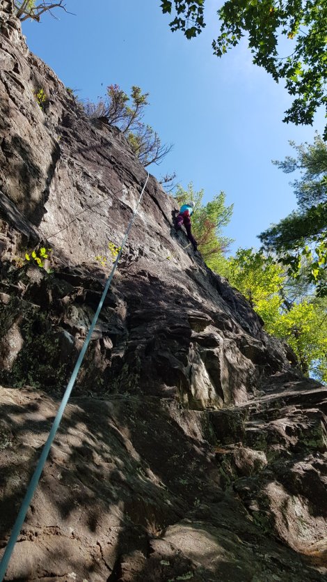 We finished off with the well-named Stemtastic, a really good 5.8 up a groove followed by a couple of crimpy pulls up a final wall. Great! Then we’re back on the road for an overnight at another gorgeous State Park campground, this time just over the border at the Coolidge State Park in Vermont. Highly recommended (and with “walk-up” availability even at 7pm on a Friday evening.)