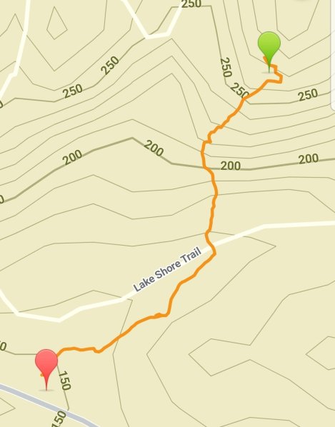 to follow a well-cairned path. Obvious now but might be harder to spot once the leaves are down, so here’s a WikiLoc trail