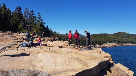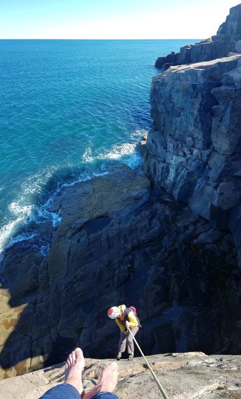 Acadia is pretty much the only National Park in the North East (certainly the only one on our itinerary) and covers much of Mount Desert Island on the coast of Maine. There’s a fair bit of climbing here, which we plan to explore over the next few days, starting with Otter Cliffs. This spot was recommended by a friendly local we met in The Gunks: “You gotta go to Otter Cliffs – it’s crazy, you just rap down to the water and there you are; climbing straight out of the Atlantic Ocean!”