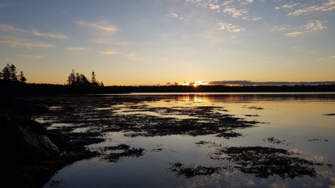 We didn’t catch it at the optimum point in the tidal cycle, but there were some pretty odd eddies and flows to gaze at. However, even if it had been a millpond it would have been a sight to behold – crystal clear waters bounded by fossiliferous rocks and surrounded by forests, with no sign of human intrusion to be seen or heard. The stirring waters are clearly a real draw for wildlife as we watched seals surfing the water chutes created by the falls, herons dipping in and out of the water, turkey vultures circling overhead and a majestic fly-past by a bald eagle. Stunning! We both felt that this unsung corner of east Maine had had been more rewarding than the whole of Acadia.