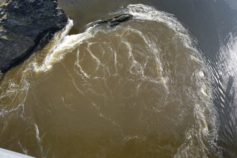 The falls arise because the huge tidal range in the bay overtakes the outflow from a massive catchment area and causes a reverse waterfall of salt water pushing back up stream.