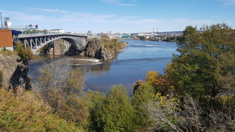 Back on the road and a surprisingly easy border crossing into Canada led in a couple of hours to Saint John, a somewhat industrial town which also lays claim to some Reversing Falls. These are more difficult to miss, being immediately beneath the major road through town, and having a viewing gantry as well as themed restaurant and glass-floored “sky-walk”. The water-show was broadly comparable…