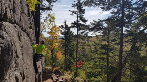 The majority of the climbing in New Brunswick lies in the south west, between Saint John and Fredericton, most concentrated around Welsford. The only hassle is that most of the crags are situated on land controlled by the Gagetown Military Base, for which you need a permit. It all sounds a bit epic, but actually it’s very straightforward and quite speedy: You just turn up at the Petersville Camp gatehouse (it’s just off junction 51 on highway 7, about 7km north of the climbing); tell the nice chap at the gate that you’d like a permit to climb; and 2 minutes later you walk out with some bits of paper.