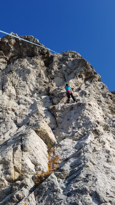 Further right again is the next major sector, La Renversee, (and accessible more directly via a more circuitous route) – check out this wikiloc trail https://www.wikiloc.com/rock-climbing-trails/kamouraska-sector-le-renversee-42291418The start of this is marked by another protruding buttress for early sun – here’s Helen rapping off Cryptogrammes en Folie.Beyond that, the main wall has three “top 20” routes in a row, with the eponymous Renversee, 5.9+, sandwiched between Le Baiser du Crapaud (kiss of the frog!), 5.9+, on the right