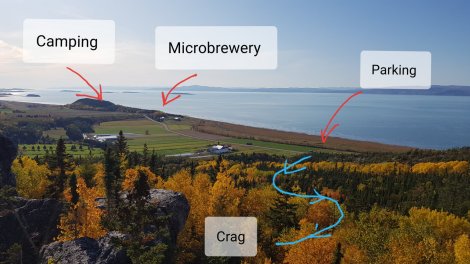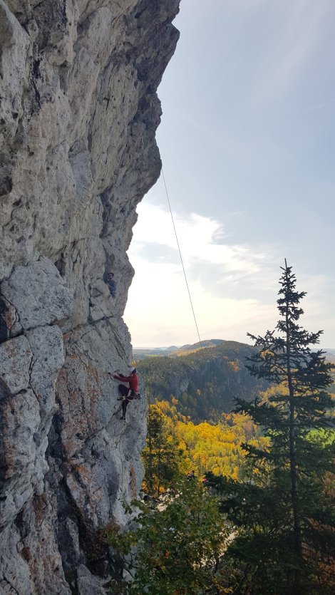 There’s also not that much of it – about 120 routes in all, and a maximum of about 80ft (but plenty for a passing visit). BTW you can buy a micro topo at the campground for $2, and it’s also well covered on Mountain Project, or you can download a somewhat dated topo here http://qc.drtopo.com/north-america/canada/quebec/kamouraska/kamouraska.pdf. Finally, being NE facing it doesn’t catch the sun until around noon (on a few protruding buttresses) and isn’t fully in the sun for another hour or two after that (no doubt welcome in the summer, but it’s maxing out at 13C in mid October and you need those rays!)