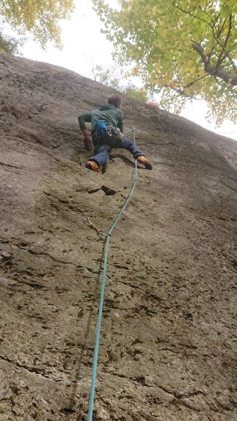 It’s a sizeable lump of rock, up to 200ft high, with a mix of established trad routes up crack lines, interspersed with more recent sports routes, in something of a state of flux as 20 years of neglect are shaken off.