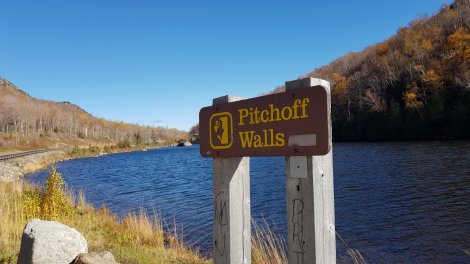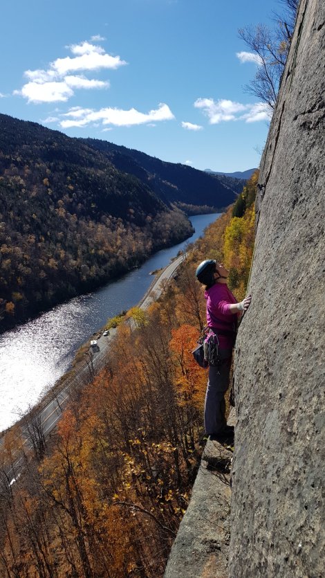 We’d vaguely planned to visit The Dacks a little earlier in October, but somehow (the flutter of a butterfly’s wing?) our NE USA roadtrip got blown off course and stretched to include New Brunswick and Québec – a happy accident, as the climbing in Québec in particular was outstanding, but it’s getting a bit chilly and damp!Nonetheless, we persevered and spent a very wet day driving over from Vermont (it was torrential across the whole of the NE) then a drier but still grey day (it would certainly qualify as dreich in Scotland) exploring the area west of Lake Placid. The weather was somewhat offset by the fabulous Fish Creek Pond Campground and some gentle walking around the Paul Smith Visitor Centre