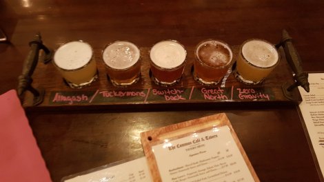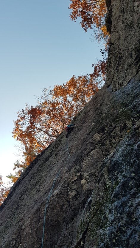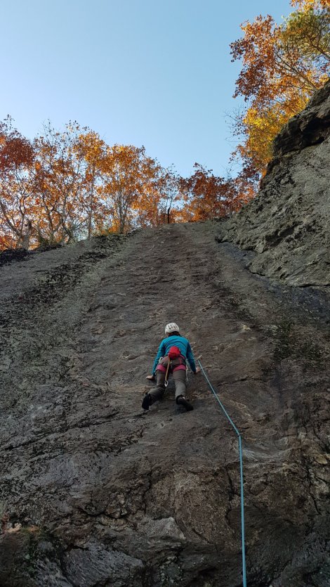 Abandoning The Dacks as the rain arrived and temperatures dropped (further!) we headed back to Rumney for a revisit / return match. We’re nearing the end of the roadtrip and have managed to get to pretty much every major destination we’d had recommended (and a few gems we discovered for ourselves). The biggest single omission is that we hadn’t climbed on Cannon Cliff “The Proudest Crag in New England” and certainly the biggest bit of granite in The Granite State. We’d moved on in a showery spell on our route northwards, hoping to catch some settled weather on the return loop – the forecast wasn’t looking promising but we thought we’d detour via Franconia Notch to at least check it out.Arriving in heavy rain we checked into the Franconia Notch State Park campground, and had the whole place pretty much to ourselves – a great spot on this historic route across the White Mountains; pity about the noise from the Interstate. Dry but claggy the next morning, and Canon Cliff looked moody and uninvitingAbout a mile wide and with routes up to 7 pitches, this east-facing crag has an almost Alpine character, and a reputation for catching out the unwary. Clearly one we’d have to come back to on a future trip.Canon Cliff is famed way beyond the climbing community though, as it was once home to The Old Man of the Mountain – a craggy feature high on its flank that became the symbol of New Hampshire until it’s eventual collapse a few years ago (after decades of increasingly ambitious efforts to prop it up!)There’s a memorial viewing area with mini Old Men which you can line up to recreate the view (it helps if you can see the mountain though!)Onwards to Rumney, only 30mins down the road but with a completely different weather system! Here’s the view of Main Cliff on our arrival.Having experienced “Weekend Rumney” it was a delight to have the whole place to ourselves, and we revisited the Parking Lot / Meadows popular end, only constrained by which routes were dry, rather than which had the shortest “line”.We ticked our way through most of the 9s and 10s that we hadn’t got on previously. The pick of these were probably Hippos on Parade and Lies and Propaganda… and the runout slabs of Cold Turkey and Bolt Line:We figured we’d earned a beer and thoroughly enjoyed an evening in The Common Cafe and Tavern…… complete with tasting flights of local IPAs,great food and an Open Mic night.